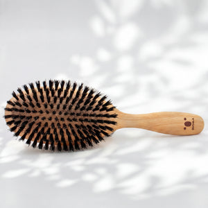 Diese Haarbürste mit Wildschweinborsten unterstützt geschmeidiges, ruhiger fallendes Haar mit natürlichem Glanz.