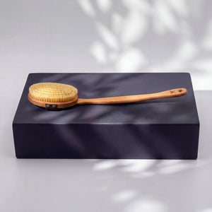 This bath brush with soft pig bristles provides gentle body care for bathing, showering and gentle dry brushing.
